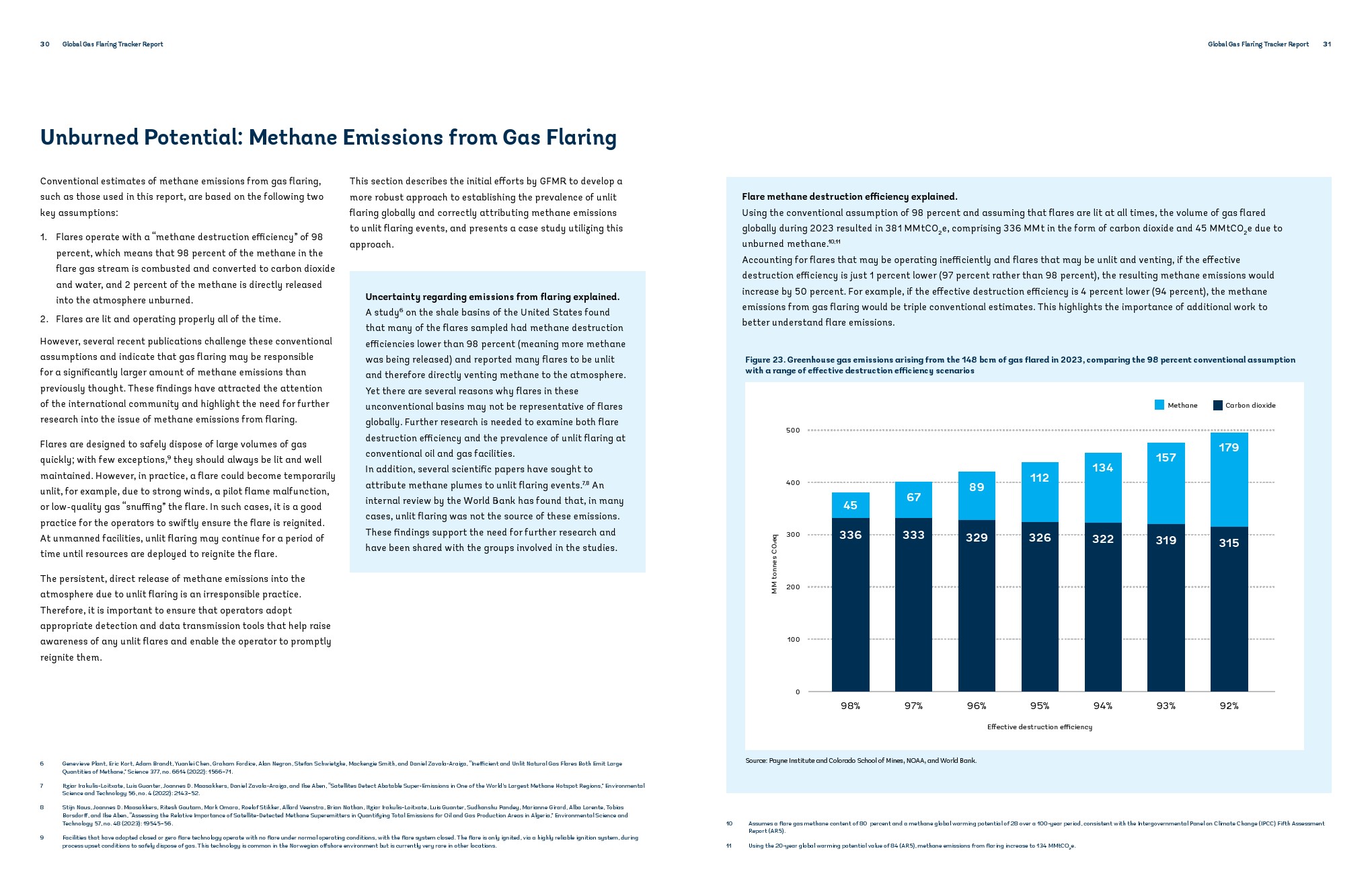 使用传统方法估算温室气体(GHG)排放量,2023年燃烧的1480亿立方米天然气导致3.81亿吨二氧化碳当量排放,其中包括4500万吨未燃烧甲烷形式的二氧化碳当量。
