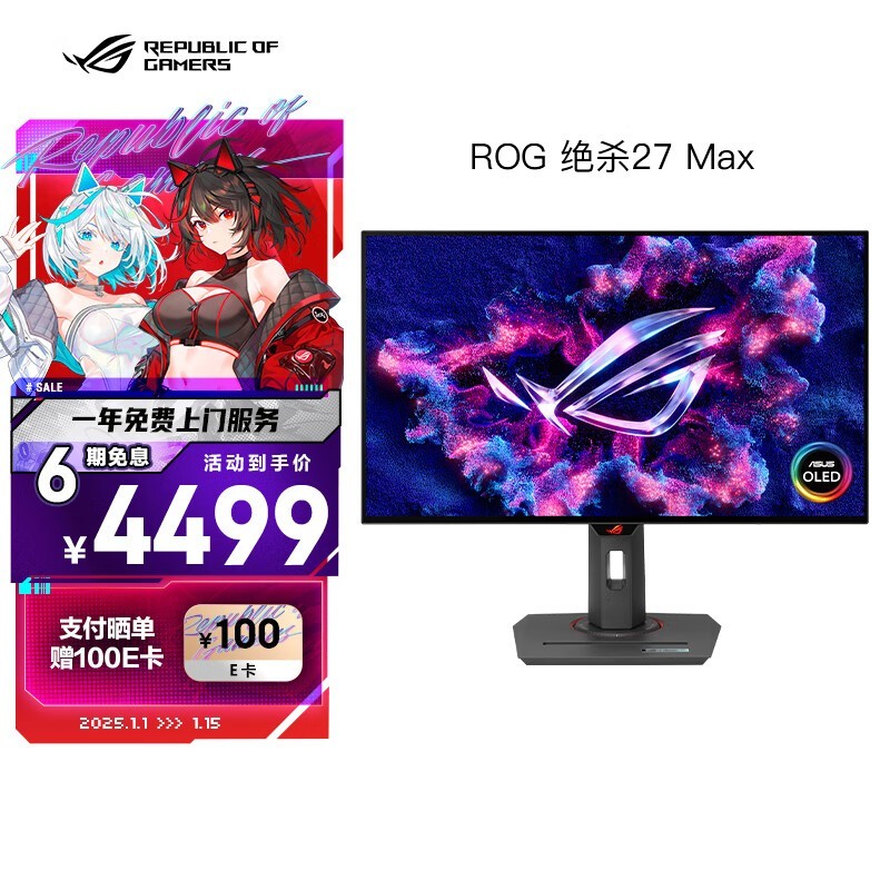 华硕ROG XG27AQDMG电竞显示器优惠来袭,到手价3465元!