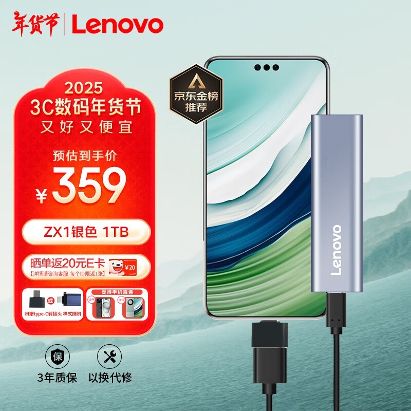 联想逐星系列ZX1 USB 3移动固态硬盘348元秒杀
