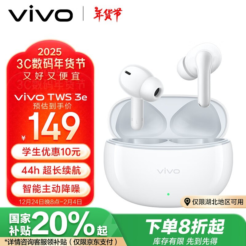 vivo TWS 3e 入耳式真无线耳机促销价103元,智能降噪佩戴舒适