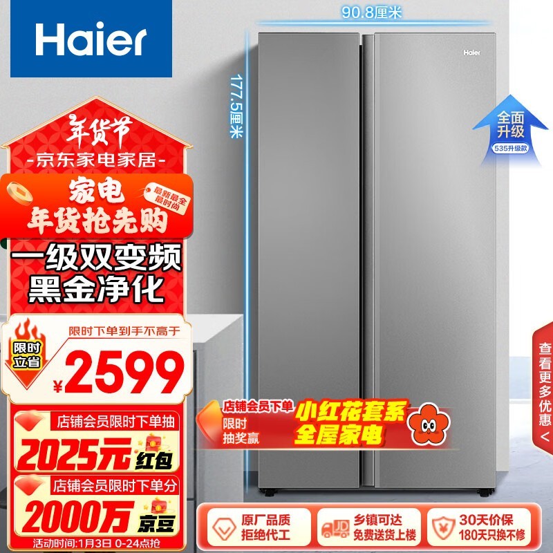 海尔 BCD-539WGHSSEDH9 冰箱 一级能效、节能环保仅1853元!