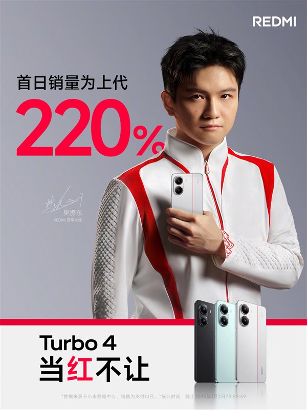 根据官方公布的数据,Turbo 4首日销量为上代220%,成绩翻倍。