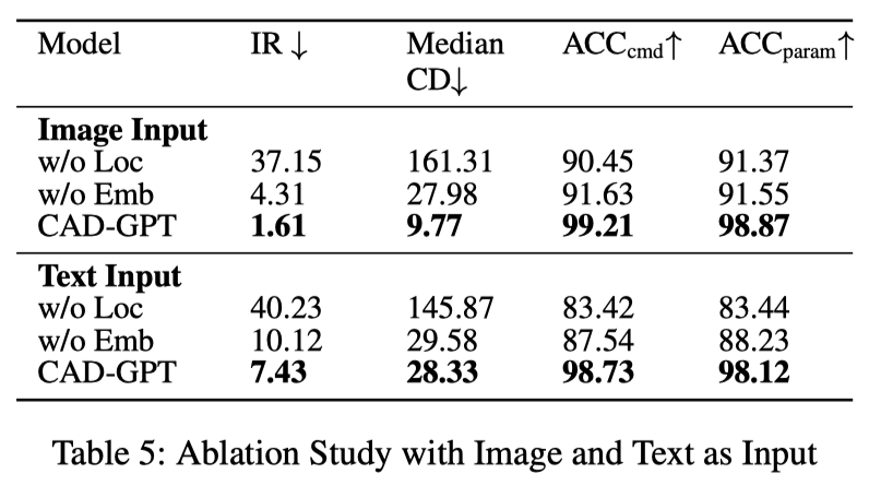 图 7 展示了是否添加 3D 建模空间定位机制训练模型的差异。如图所示,添加定位机制后,CAD-GPT 可以精准的推理空间角度、位置变化,以及生成准确的 2D 草图。