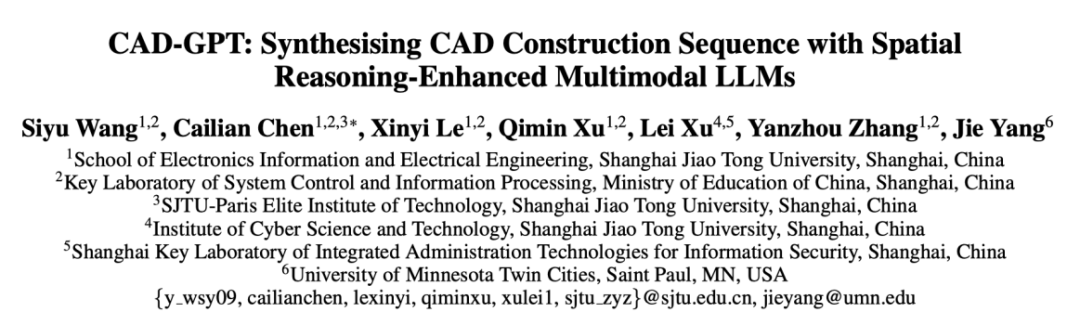论文标题:CAD-GPT: Synthesising CAD Construction Sequence with Spatial Reasoning-Enhanced Multimodal LLMs