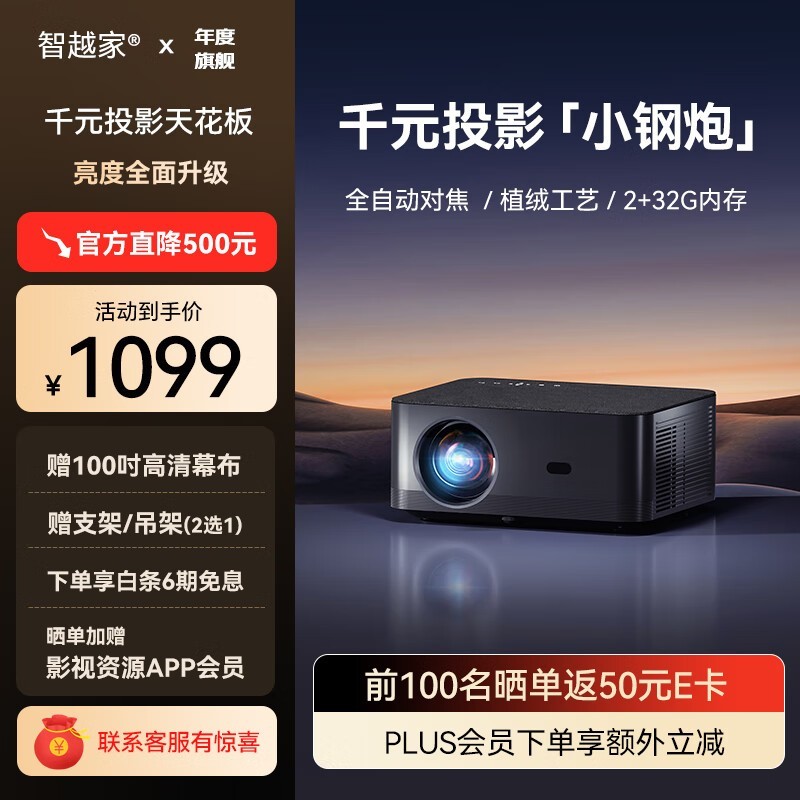 智越家P88W:1080P全高清投影仪,自动对焦+语音遥控,家庭影院新宠,仅1599元起