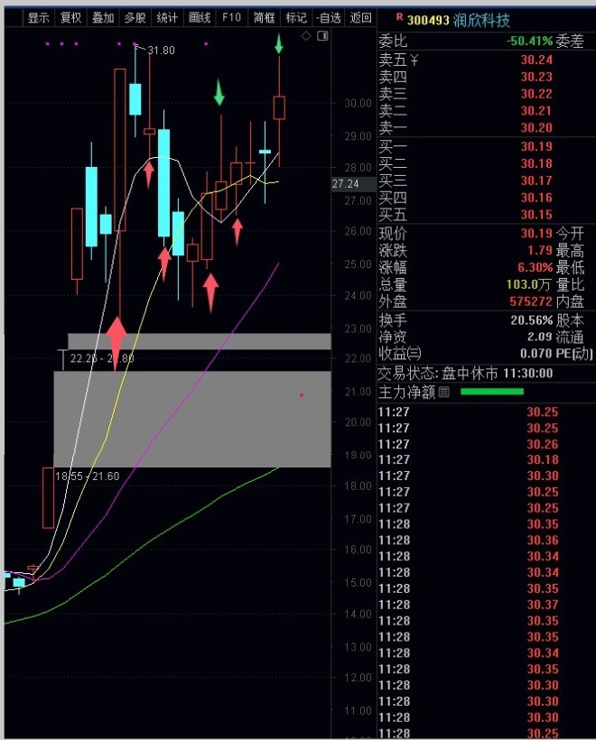 4:未来走势预判:我觉得AI眼镜行情还没结束,接下来眼镜的题材驱动还很多,具体的不列举,大家可以自己搜消息面,而且都是近期的驱动,不少,年底了,AI眼镜也符合大消费范畴,同时也有WEI XIN送礼的题材关联,不会确少话题的,润欣科技我预期后市创新高之后,大概还有20里面以上的空间。