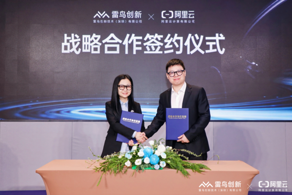 雷鸟创新创始人兼CEO李宏伟,阿里云智能集团首席技术官周靖人出席仪式并见证签约。雷鸟创新CTO张君杰,阿里云智能集团副总裁、华南大区总经理康敏代表双方签署战略合作协议。