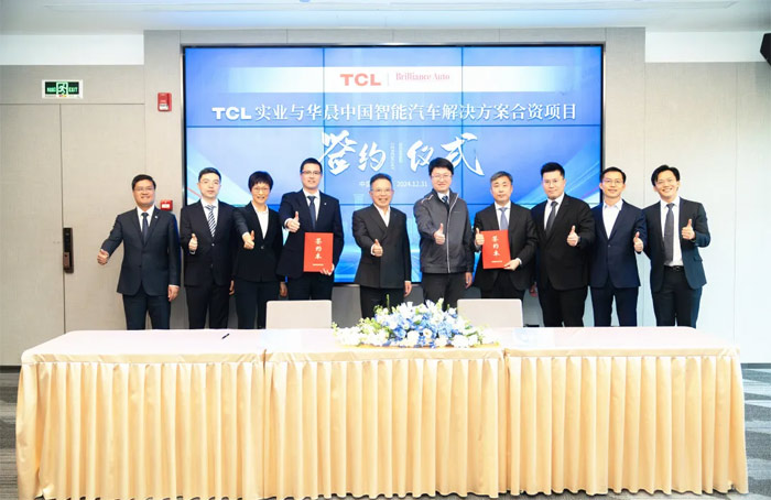 12月31日,华晨中国汽车控股有限公司与TCL实业控股股份有限公司在深圳签署智能汽车解决方案合资项目协议。华晨中国旗下沈阳金杯汽车工业控股有限公司与 TCL 恒时天瑞投资(宁波)有限公司将共同成立一家合资企业,专注于智能座舱及显示器组件的开发与制造。双方各持有合资企业 50% 的股权,总投资额达 14 亿元人民币,其中金杯汽控出资 7 亿元现金,TCL 宁波通过现金和注入资产的方式出资 7 亿元。