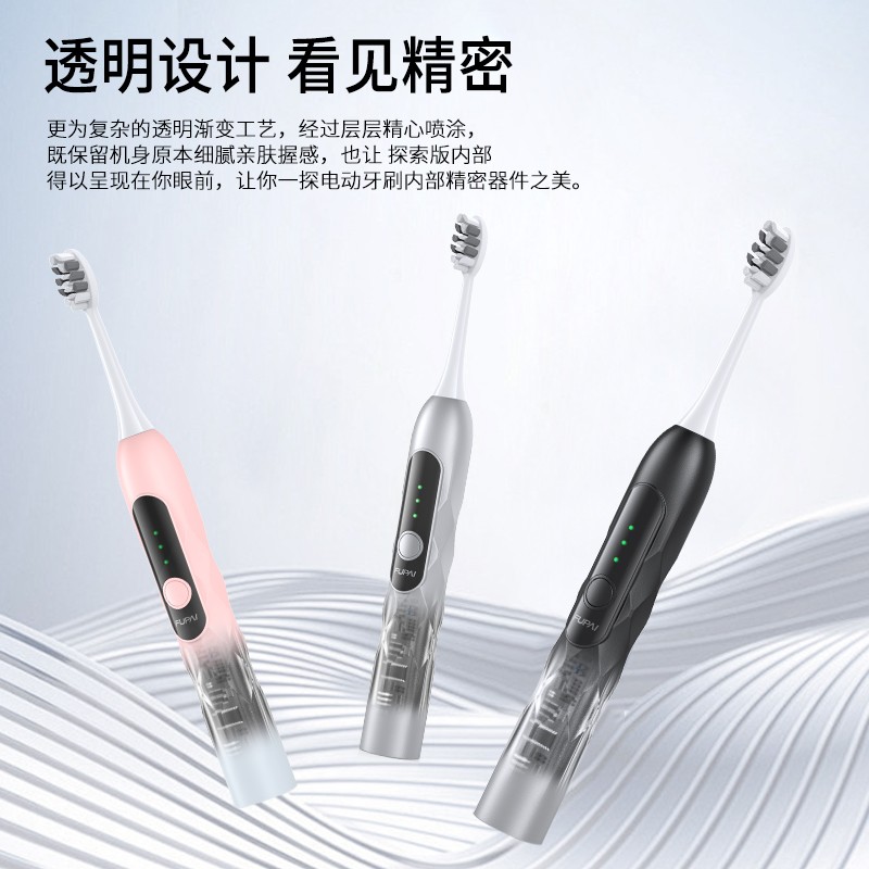 福派新一代扫振电动牙刷,一款智能洁齿的神器。这款电动牙刷采用了先进的声波震动技术,可以更彻底地清洁牙齿,让你拥有健康的口气和美丽的笑容。