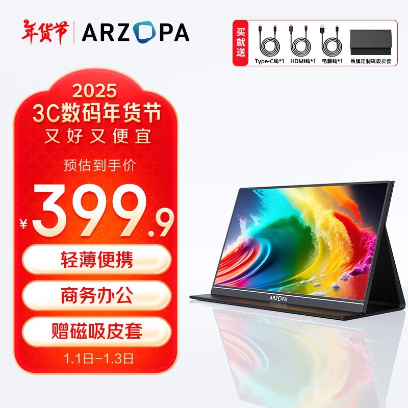 艾卓帕70Hz刷新率便携显示器仅399元 无坏点色准高