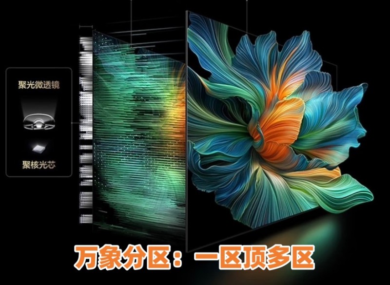 首先,这款C11K搭载TCL最新研发突破的新技术—万象分区。这项技术就是从问世以来就广受消费者好评和业内人士认可的全域光晕控制技术迭代的新控光技术,主要原因是它解决了普通分区电视“高参数低画质”的这一技术难点,以前普通分区电视由于边际递减效应的存在,导致成倍叠加参数却无法同步提升画质,而万象分区技术是从核心的底层技术做突破,从发光到成像的各个环节都进行技术升级,通过聚核光芯、新一代超聚光微透镜、微距OD、瞬态响应、双向23bit、超动态光影仿生算法以及华星HVA屏一系列技术的共同加持,形成了“一站式”全链路的精准控光,这么多高端技术听起来是不是有点复杂?其实你只需要记住一点就行,万象分区的控光效果要比普通分区强好几倍,一个万象分区可以打多个普通分区!比如说C11K携带这些技术后,就轻而易举实现了2048级万象分区比4000级普通分区的电视更强的画质体验,看电视科幻片时,那些发光的星球边缘的虚影也就是光晕没了,层次感强,视觉体验噌噌往上涨!这次TCL在C系列产品上加入的万象分区,也使得这个系列画质进入了一个新的水平高度,品质感拉满。