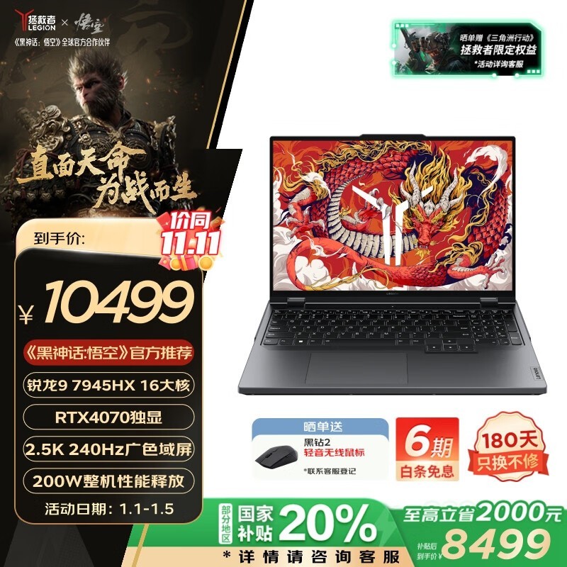拯救者 R9000P 游戏本 2024款京东促销价8426元 暴降1000元
