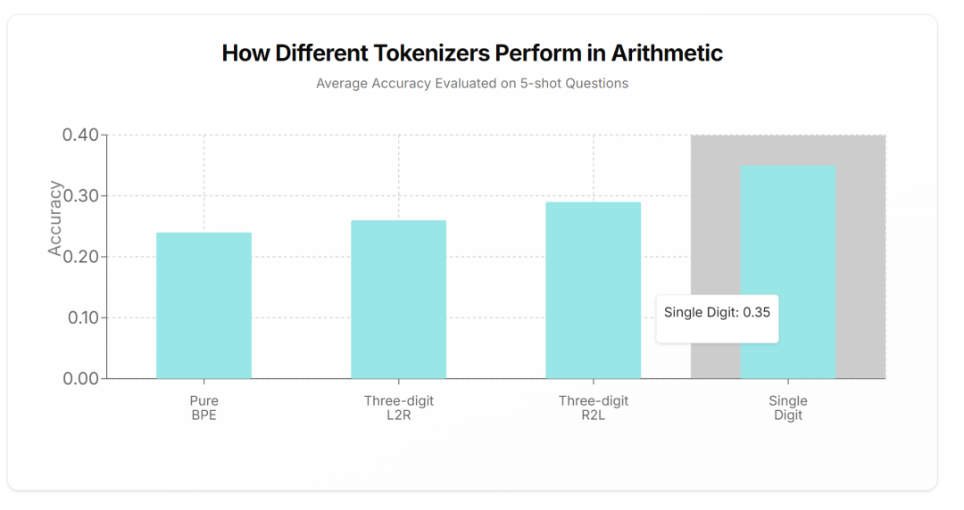 最重要的是,对于算术运算,单位数 tokenization 的性能明显优于其他方法。