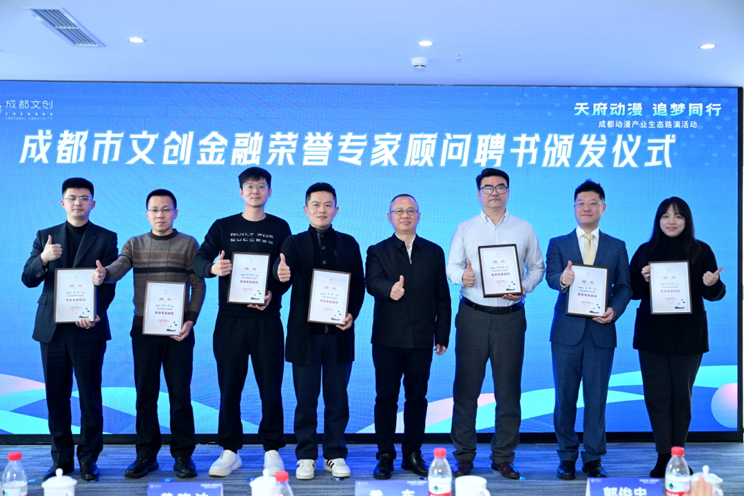 借此活动,长期深耕成都文创金融一线,为企业解决诸多金融实践难题的资深专家——包括四川文投文化产业私募基金投资管理有限公司总经理黄晓迪、富坤投资合伙人田野、沛坤资本合伙人霍煜东等7位金融界代表,被聘为成都市文创金融荣誉专家顾问。