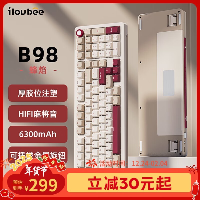 艾卢比B98机械键盘 双色注塑键帽 热插拔轴体 功能齐全