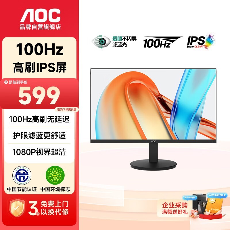 AOC冠捷27英寸显示器599元秒杀!