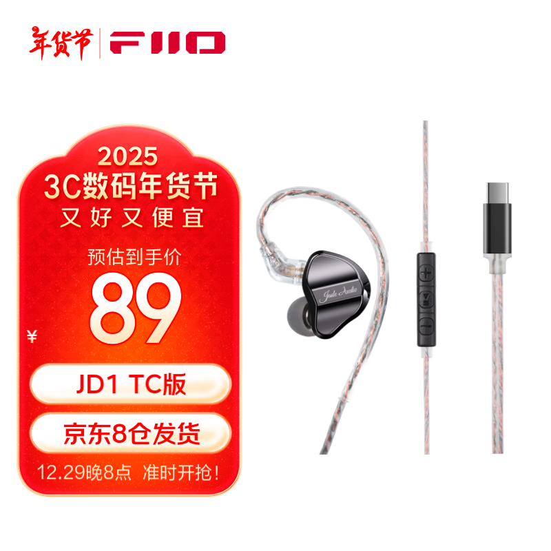 飞傲 JD1 入耳式动圈耳机 type-C版89元抢购