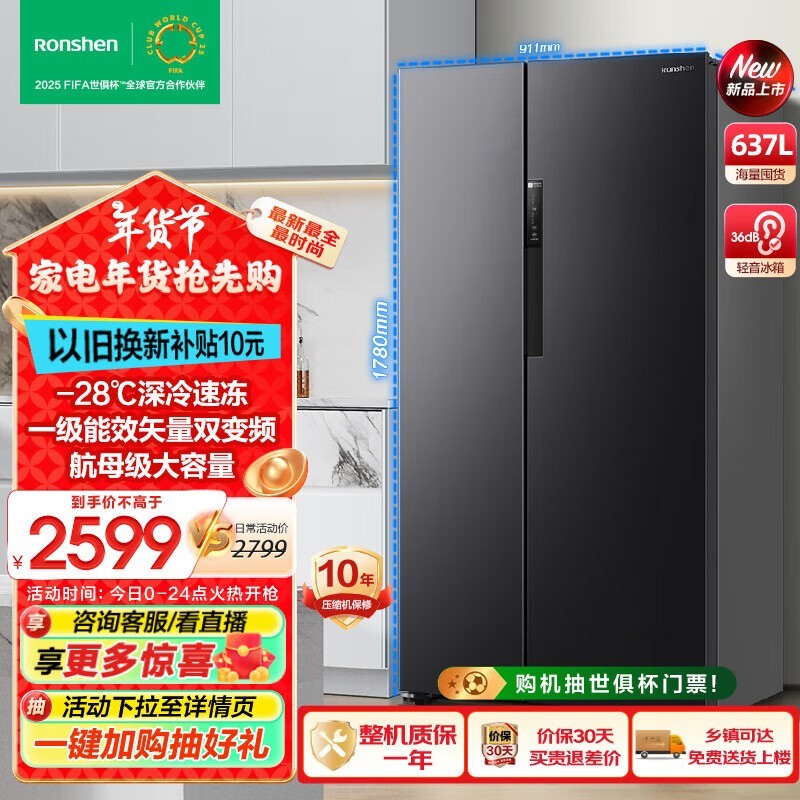 容声637升冰箱双开门家用对开门一级能效变频风冷无霜超大容量冰箱