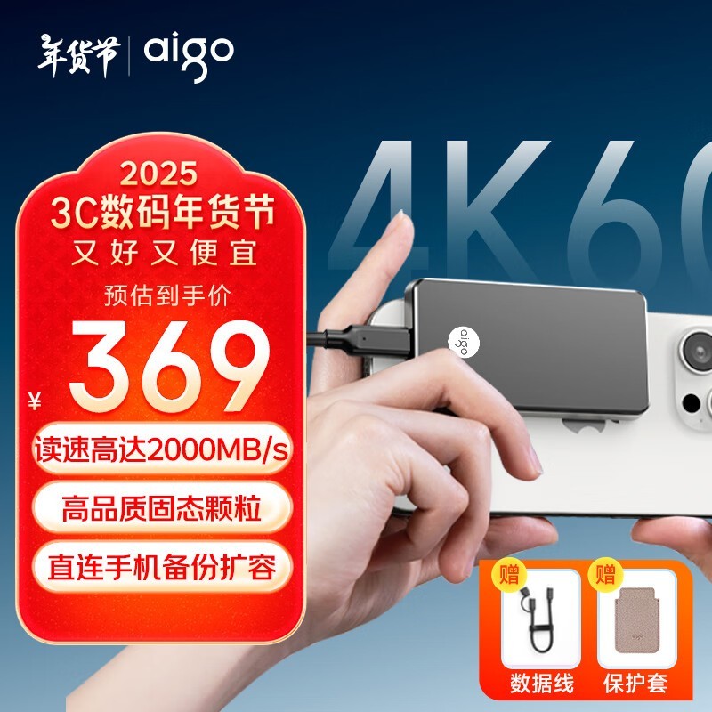 爱国者超跑系列P1 USB3.1 Gen2 NVMe1.3移动固态硬盘仅售369元