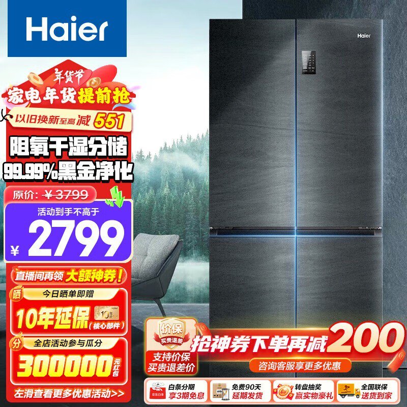海尔BCD-478WGHTD5DDYU1冰箱2969到手