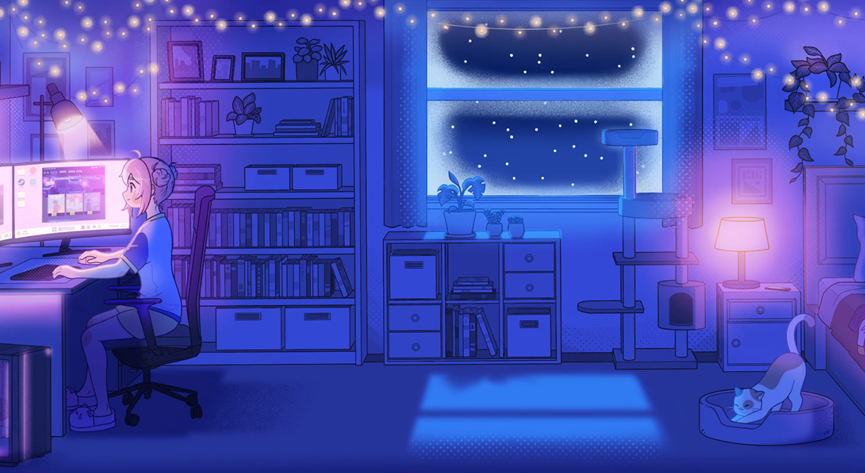 冬促的时间定在西方的圣诞假期,Steam娘跟猫猫也安心呆在家里度假,换上便衣,享受随意翻阅Steam首页找游戏的那种懒洋洋的惬意。