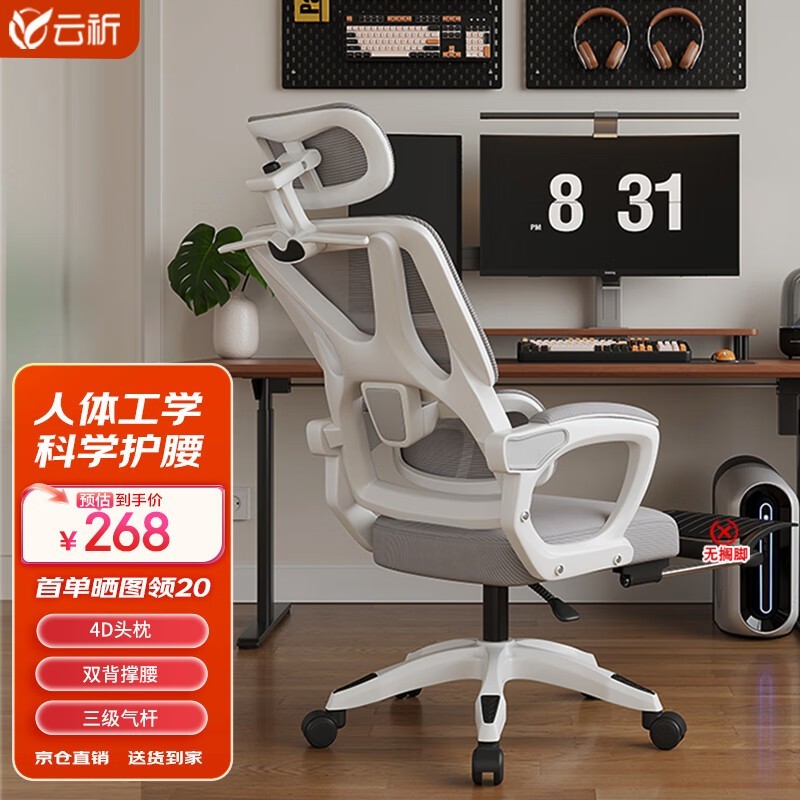 人体工学椅!云祈人体工学椅到手价268元