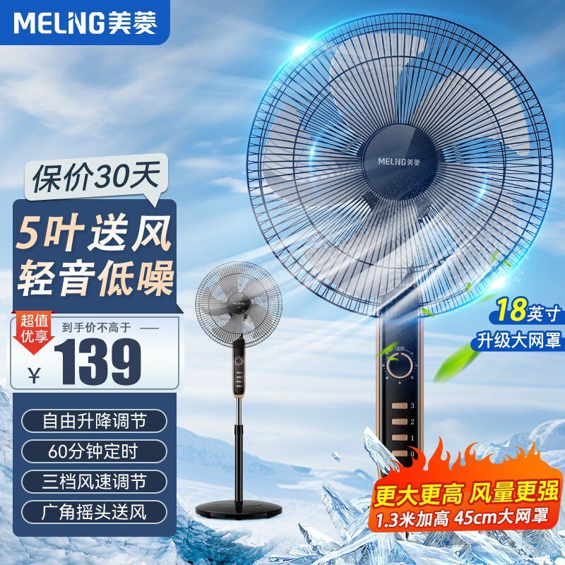 美菱落地扇家用七叶轻音电风扇139元秒杀!