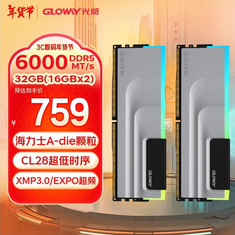 光威神武RGB DDR5 6400MHz RGB内存历史低价740元到手