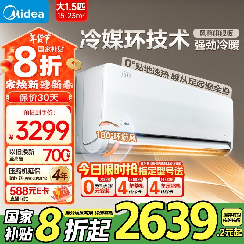 3D环游风+新一级能效 美的大1.5匹空调2345元
