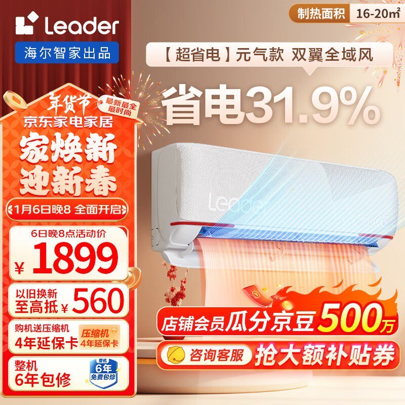 海尔智家1匹一级能效超省电空调挂机到手价1580元!