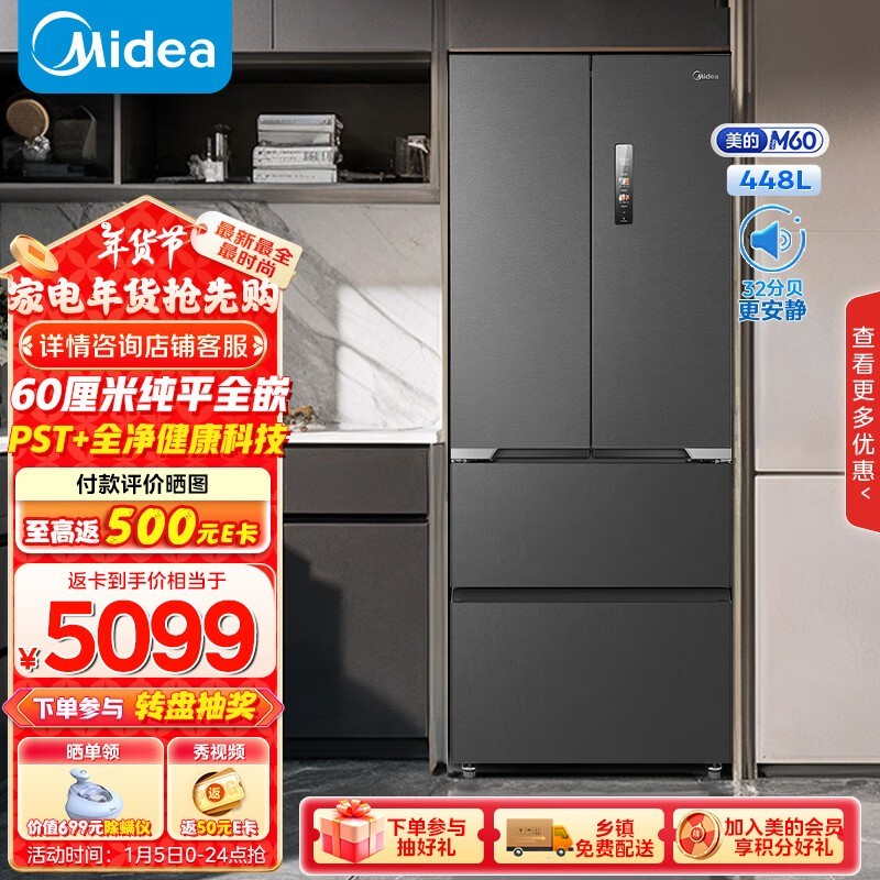 美的M60系列多门冰箱采用底部散热技术,完美融入60cm标准橱柜
