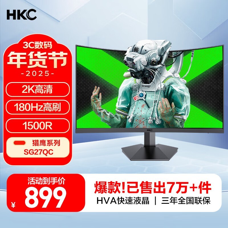 惠科显示器899到手 三星VA曲面屏 高色域180Hz 到手价899