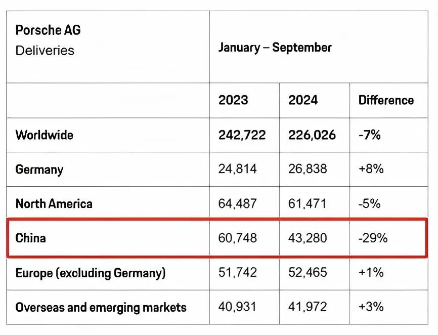这一年,其在华销量下降2.5%,2023年进一步扩大至15%,而到2024年前三季度,已是暴跌29%。