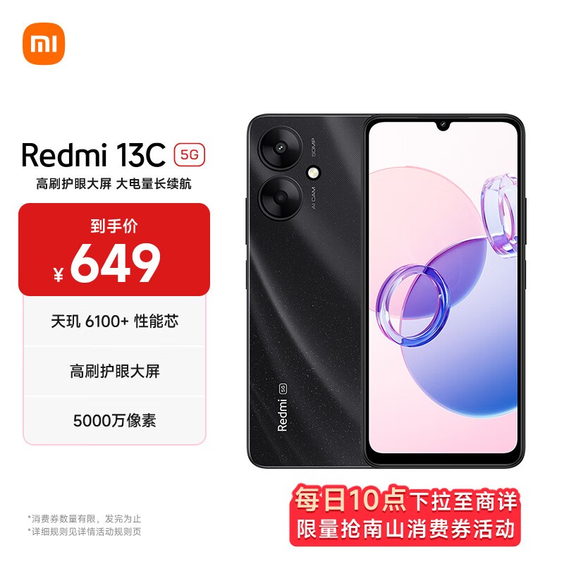 红米 13C 5G手机仅售635元 还包邮