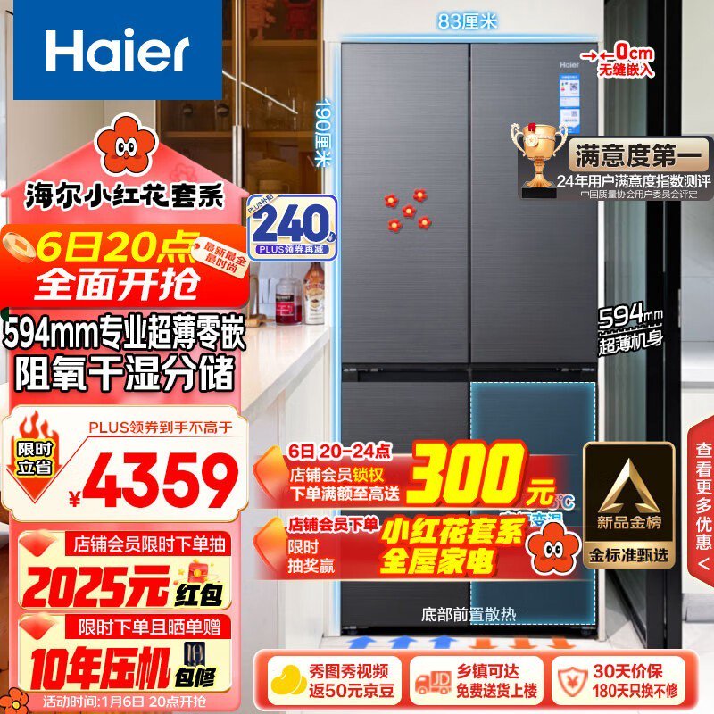 海尔 BCD-472WGHTDB9SYU1家用电冰箱到手价3248元