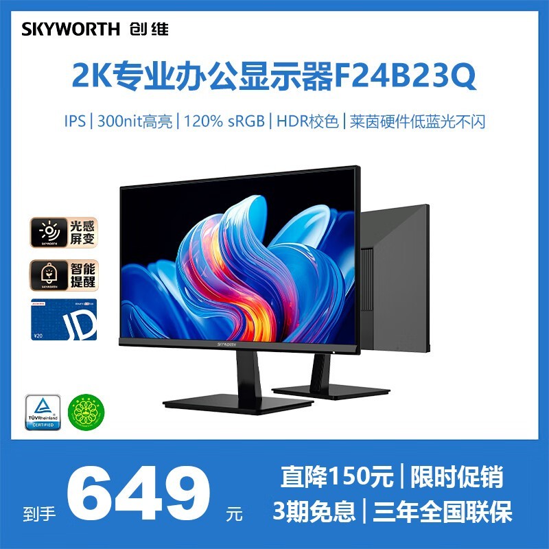 511元抢购SKYWORTH 创维 23.8英寸 2K高清 IPS显示器