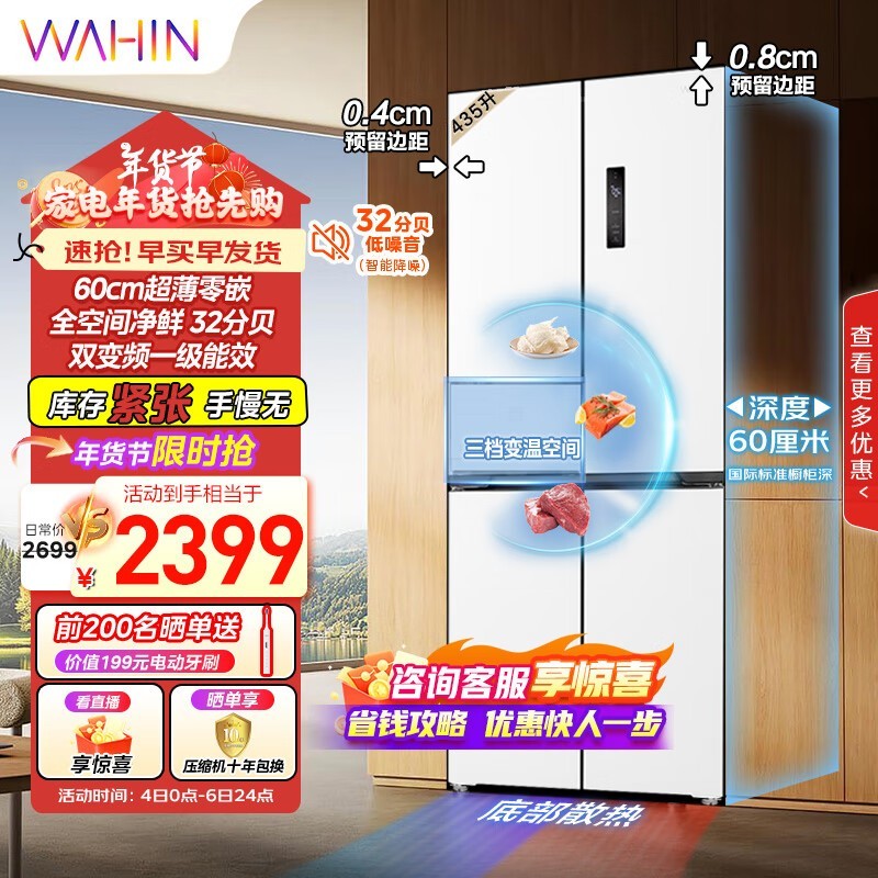 华凌HR-456WUSPZ十字对开门冰箱,国家补贴立减20%