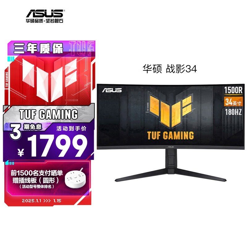 华硕 VG34VQL3A显示器180Hz刷新率游戏神器 1999元!