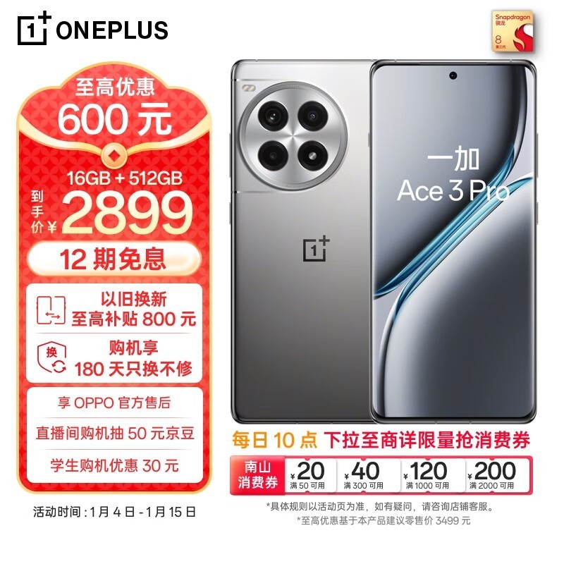一加Ace 3 Pro手机暴跌1700元!2611元入手