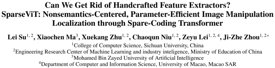论文:《Can We Get Rid of Handcrafted Feature Extractors? SparseViT: Nonsemantics-Centered, Parameter-Efficient Image Manipulation Localization through Spare-Coding Transformer》