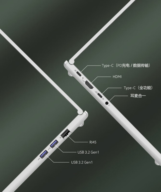 接口方面,宏碁非凡Go Pro左侧配备 2 个全功能 Type-C 接口(其中一个支持PD充电)、1 个 HDMI 接口、1 个 3.5mm 音频接口。机身右侧则提供了 2 个 USB-A 3.2 Gen 1 接口,1 个 RJ45有线网络接口,可以满足日常外接设备的需求。