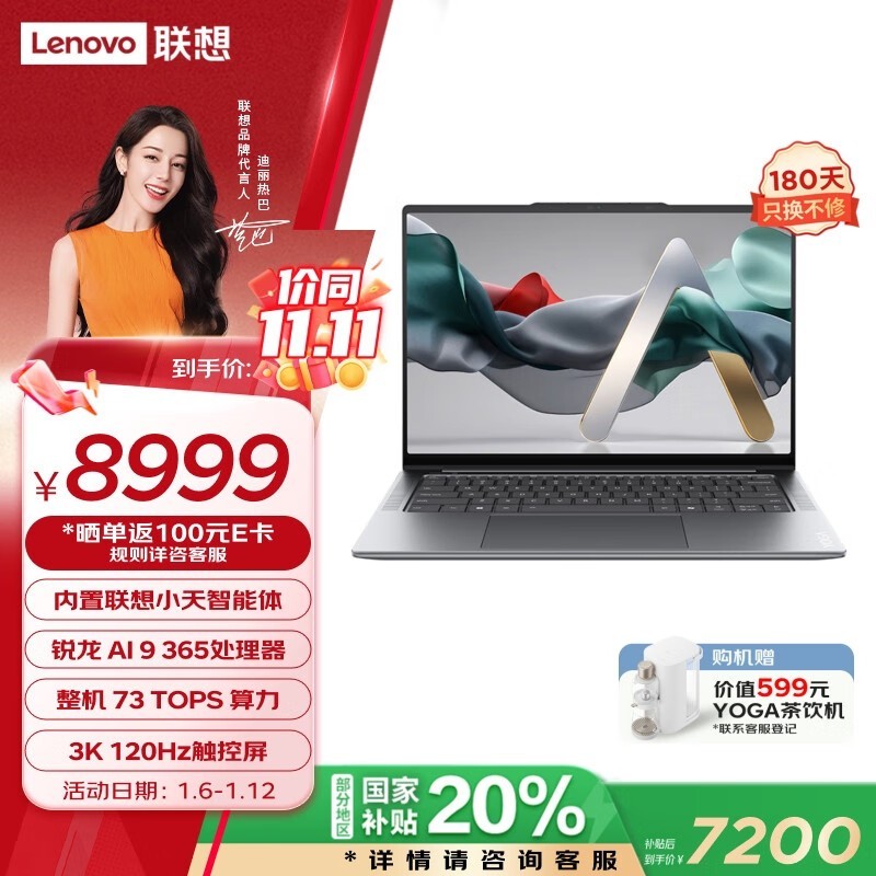 联想YOGA Pro 14 AI元启版轻薄本 搭载锐龙9 365处理器 7175元到手!