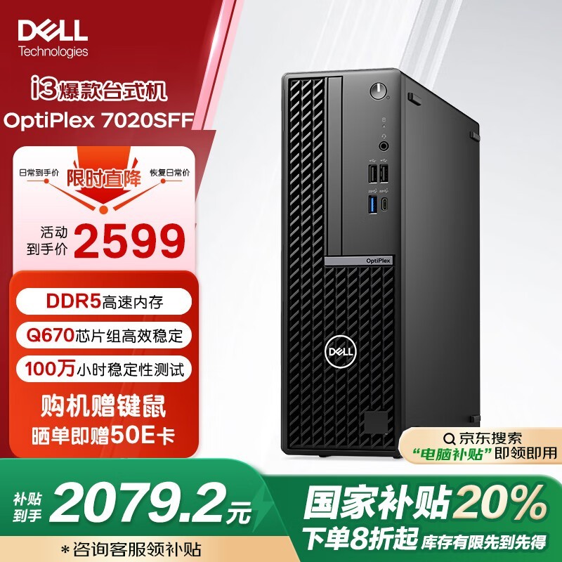 限时优惠 戴尔台式机电脑仅售2079元