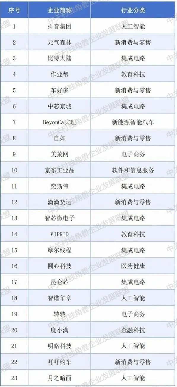 北京市独角兽企业名单(2024)