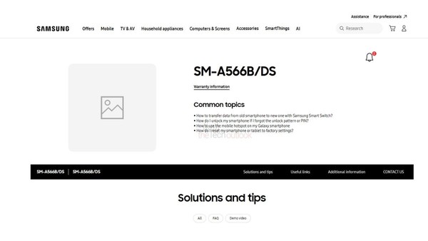 根据三星法国官网的信息,三星A56的支持页面已经上线,确认了其型号为“SM-A566B/DS”,其中“DS”代表双卡双待功能。尽管支持页面并未透露更多细节,但此前的多方爆料已揭示了这款即将发布的智能手机的部分核心配置和设计亮点。
