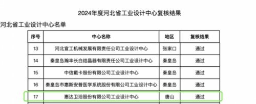 近日,河北省工业和信息化厅正式公布了2024年度河北省工业设计中心复核结果,惠达卫浴凭借其卓越的设计创新能力和深厚的综合实力,再次成功通过审核。与此同时,其子公司惠达洁具也首次荣获河北省工业设计中心的称号,这一成果无疑是对惠达卫浴多年来在工业设计领域深耕细作的高度认可。