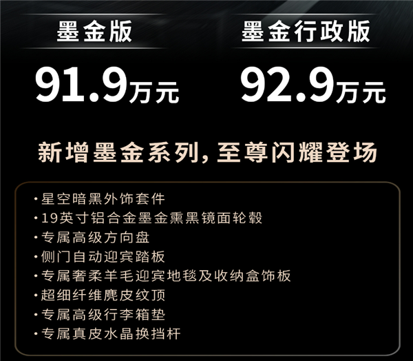 近日,一汽丰田官宣皇冠威尔法墨金系列正式上市,包含2款车型,售价区间91.9-92.9万元。