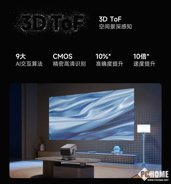 除了出色的画质之外,Vidda C2 Ultra还配备可以360°旋转的一体式云台底座,配合升级后的Vi-AI智能校正技术,校正速度提升约10倍。其搭载了新高规激光dToF,采用精密高清CMOS,提供无感对焦、智能梯形校正、双边自动入幕、精准避障等功能,并且检测距离、响应时间和精准度都得到大幅提升。
