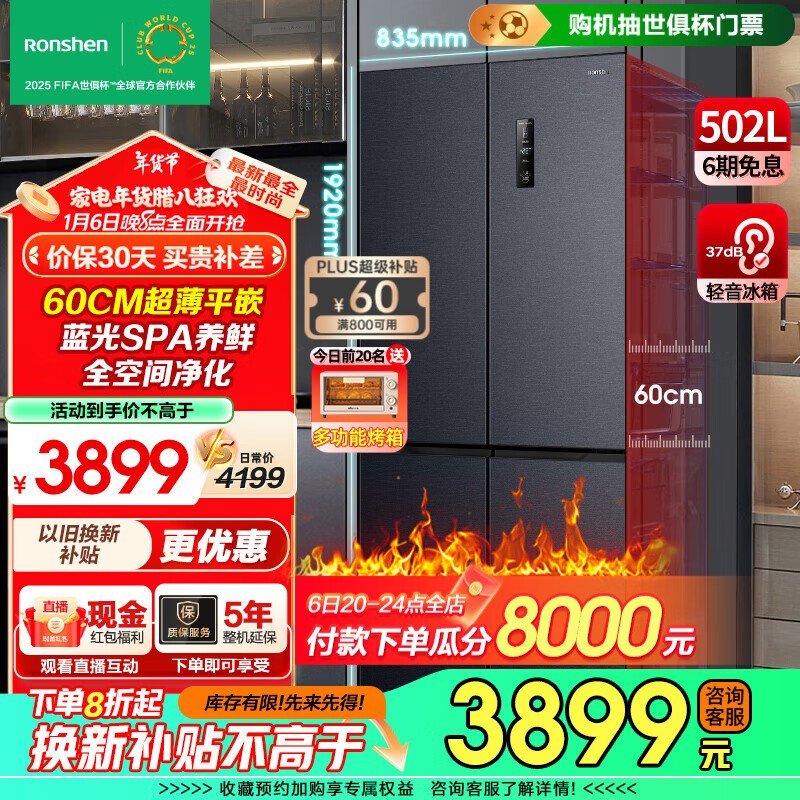 容声超薄零嵌冰箱3409元!
