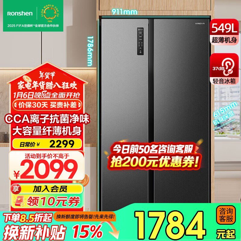 容声549升对开门电冰箱历史低价1524元